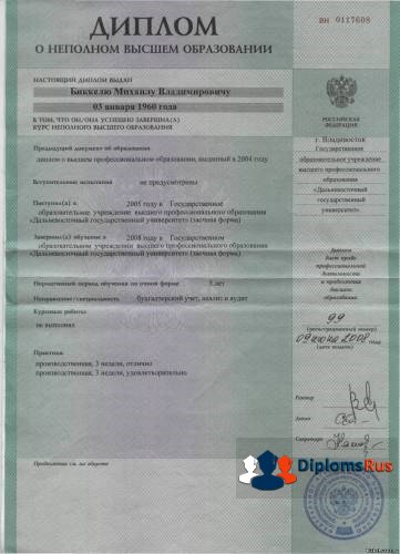 Диплом о неполном образовании